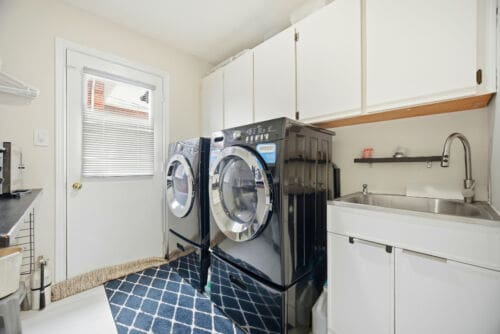 The main floor showcases stunning bamboo and porcelain flooring (2023) and features a renovated kitchen (2023) complete with quartz countertops, a pantry, updated range hood, and stainless steel appliances. The kitchen walks out to a west-facing patio, perfect for enjoying afternoon sun and evening gatherings. In addition to the spacious principal rooms, the main level also offers a private den, ideal for a home office or study space.