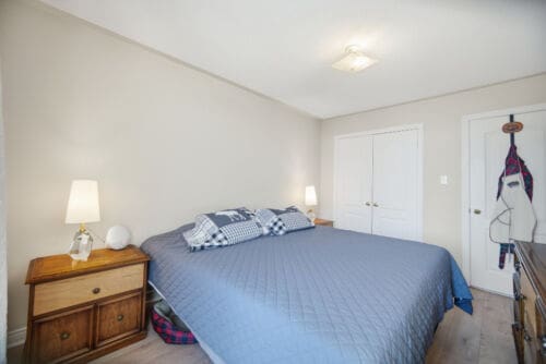 The home includes two fireplaces (gas & electric), a generous family-sized kitchen with walk-out to the deck, and a spacious primary bedroom with walk-in closet and five-piece ensuite. The Primary bedroom enjoys its own private deck through the sliding door, for serenity. The lower-level bedroom includes roughed-in kitchen plumbing and a gas line, providing excellent flexibility.