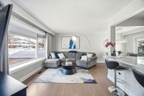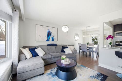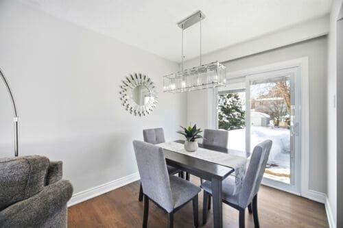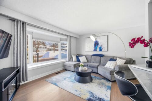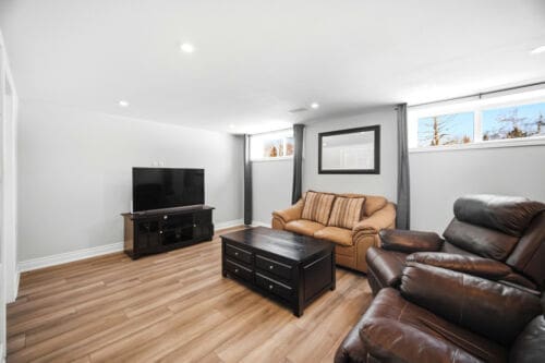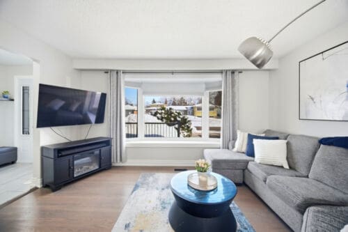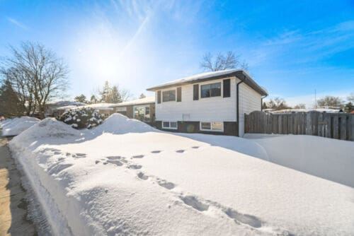 Additional improvements include updated interior doors and baseboards, eavestroughs, driveway, and basement window. The furnace and air conditioner were replaced in 2017 for added peace of mind. Decorated in tasteful neutral tones throughout, the home also offers a full lower-level bathroom with a large soaker tub and plenty of extra storage space.