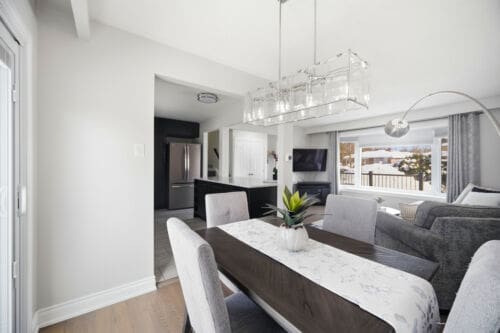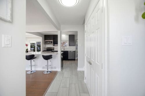 This beautifully updated four-level backsplit sits on a generous, pool-sized lot in Orangeville and offers stylish, move-in ready living from top to bottom. The home has been completely renovated with a modern open-concept kitchen featuring a centre island with breakfast bar, quartzite countertops, stainless steel appliances, and a contemporary backsplash. Hardwood flooring runs throughout the upper levels, while the renovated main bathroom showcases an oversized shower and elegant finishes.