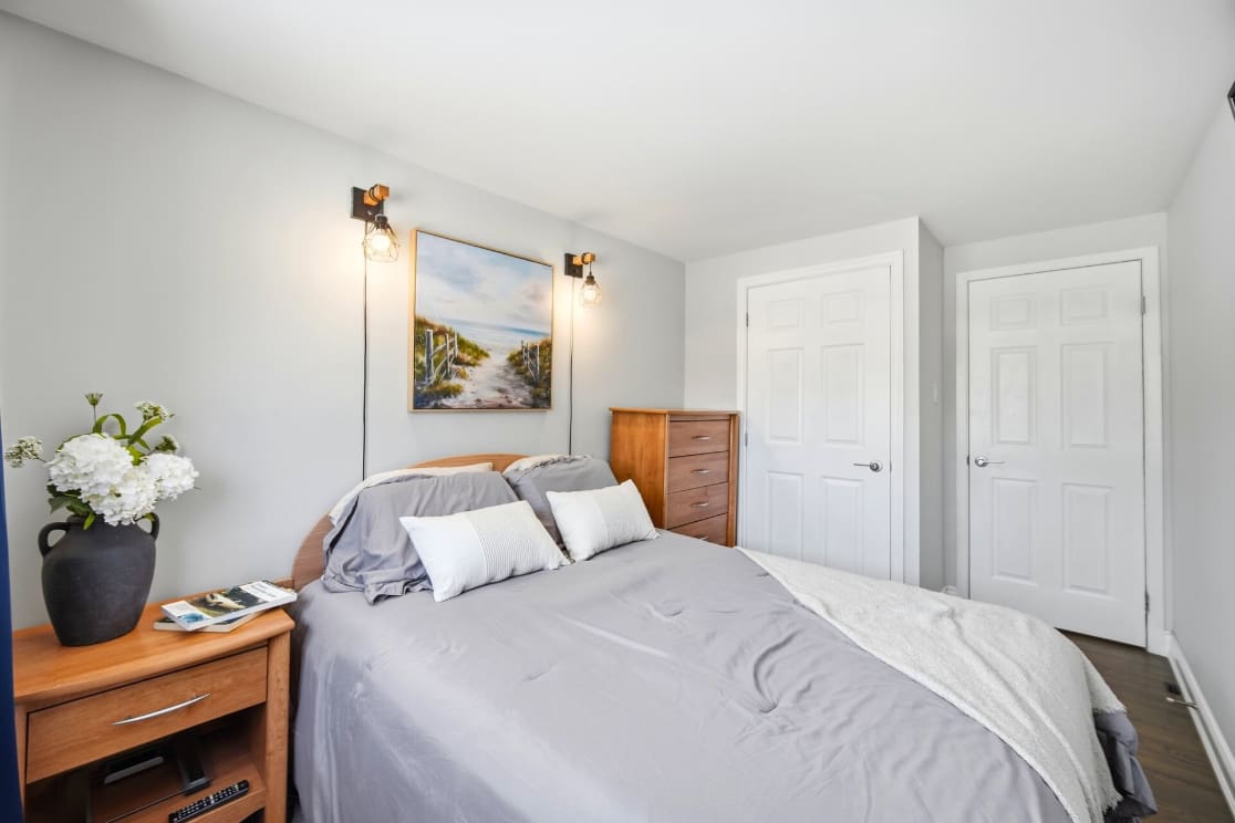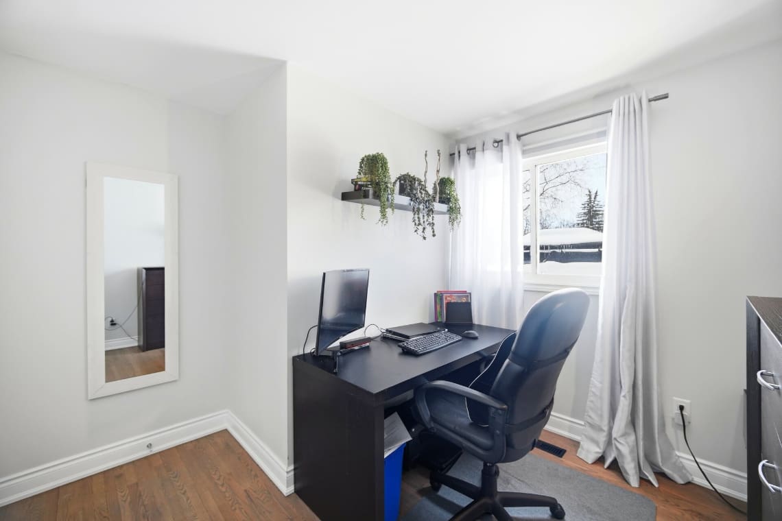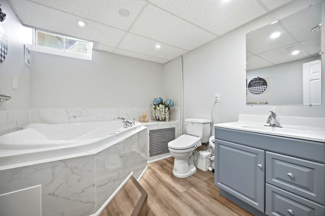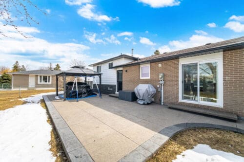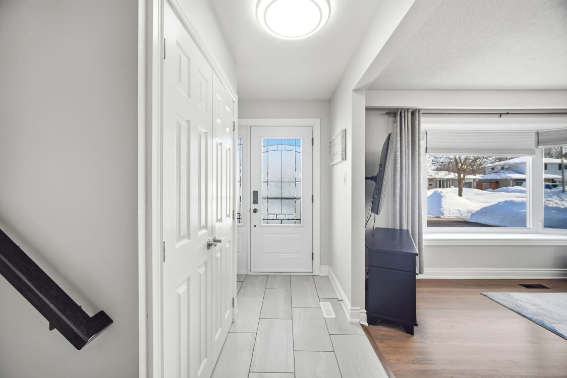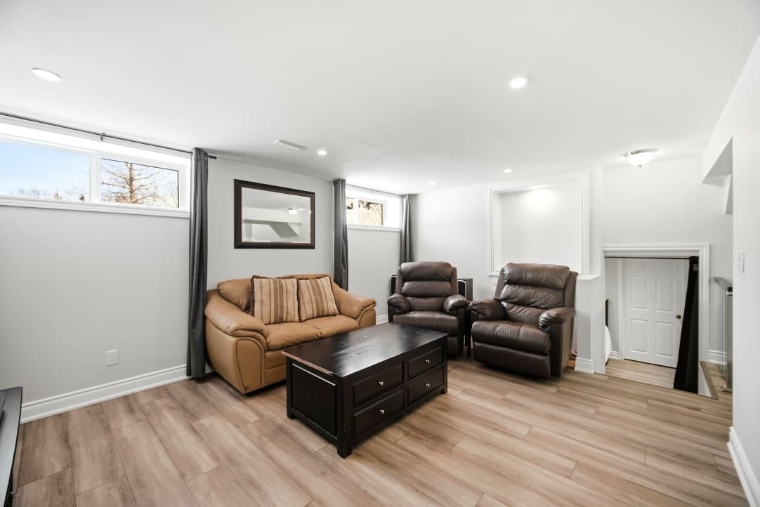 Additional improvements include updated interior doors and baseboards, eavestroughs, driveway, and basement window. The furnace and air conditioner were replaced in 2017 for added peace of mind. Decorated in tasteful neutral tones throughout, the home also offers a full lower-level bathroom with a large soaker tub and plenty of extra storage space.