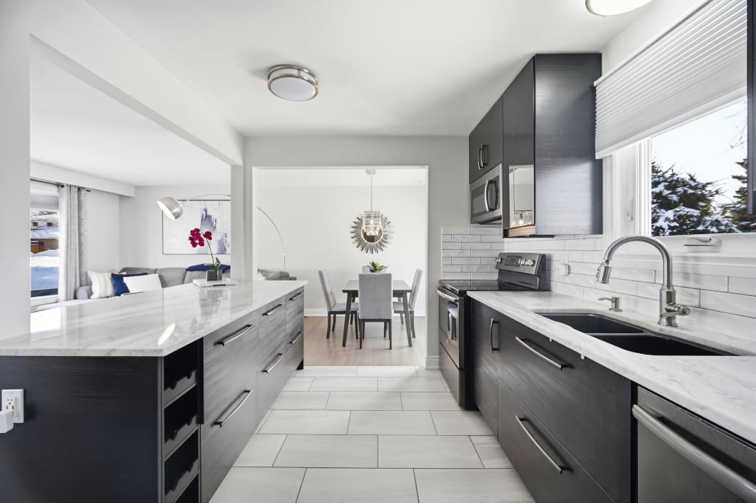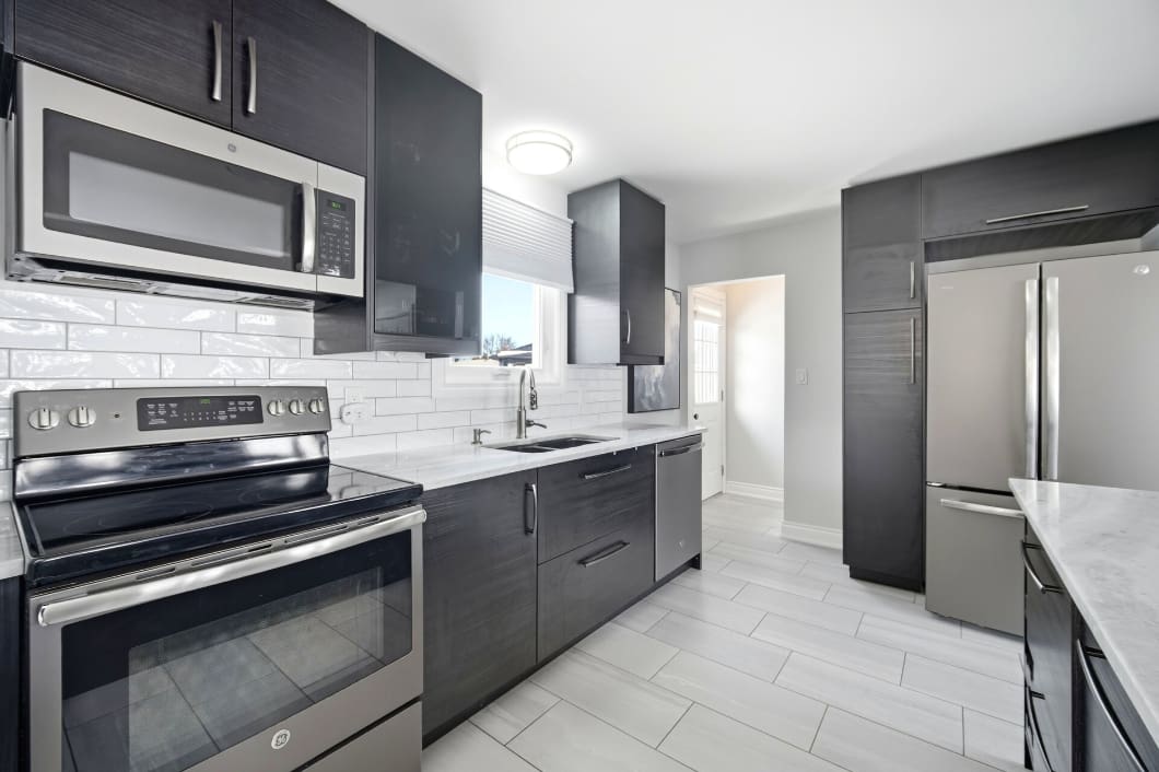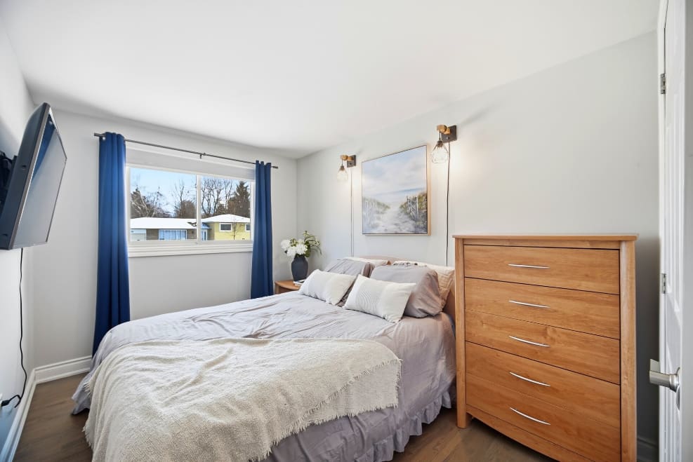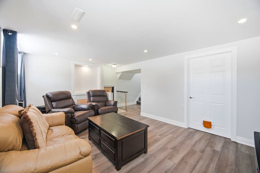 This beautifully updated four-level backsplit sits on a generous, pool-sized lot in Orangeville and offers stylish, move-in ready living from top to bottom. The home has been completely renovated with a modern open-concept kitchen featuring a centre island with breakfast bar, quartzite countertops, stainless steel appliances, and a contemporary backsplash. Hardwood flooring runs throughout the upper levels, while the renovated main bathroom showcases an oversized shower and elegant finishes.