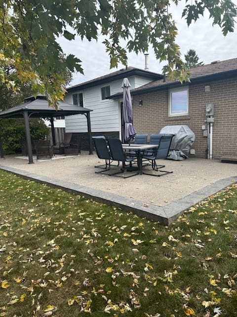 Natural light pours in through the front bay window, and the dining room provides a seamless walkout to the backyard through sliding doors. The lower-level rec room is finished with luxury vinyl flooring, creating a warm and comfortable space for relaxing or entertaining. Outside, you’ll find a composite front porch and a beautifully crafted rear stone patio with thousands invested in landscaping upgrades.